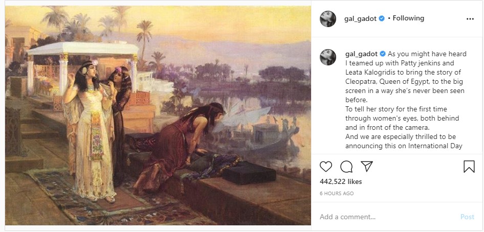 Setelah dua film Wonder Woman, Gal Gadot dan Patty Jenkins rupanya kembali dipertemukan lewat kisah epik Cleopatra yang sesuai judulnya mengisahkan sosok Cleopatra. Hal ini diumumkan Gal Gadot di akun media sosialnya bertepat dengan Hari Internasional untuk Anak-Anak Perempuan.