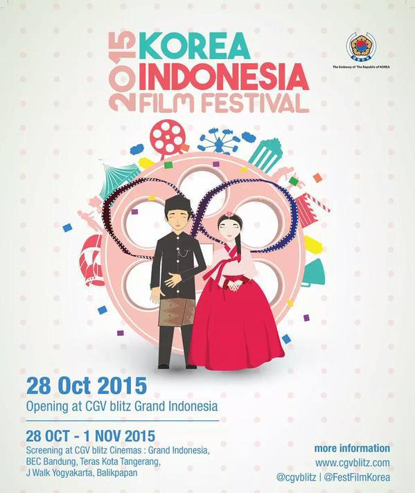 Korea Indonesia Film Festival kini hadir kembali menyapa Jelata! Film festival yang diselenggarakan atas kerjasama Kedutaan Besar Korea di Indonesia dan Badan Ekonomi Kreatif Indonesia ini akan dilaksanakan mulai dari tanggal 28 Oktober—1 November 2015 di enam lokasi CGV Blitz: Grand Indonesia, Pacific Place Jakarta, Teras Kota Tangerang, BEC Mall Bandung, Sahid J Walk Jogjakarta, dan Balikpapan Mall. Dengan mengusung 16 film Korea berbagai genre dan 4 film Indonesia, Jelata bisa menyaksikan film-film tersebut hanya dengan membayar tiket sebesar Rp10.000 (sepuluh ribu rupiah) saja.