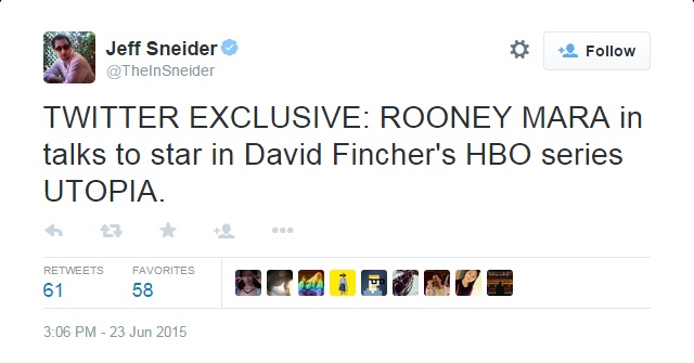 Jeff Sneider dari The Wrap yang pertama kali melaporkan bahwa Rooney Mara akan membintangi "Utopia". Serial yang aslinya tayang di Inggris ini berkisah mengenai sekelompok orang yang berada dalam bahaya karena menyimpan graphic novel yang berjudul "The Utopia Experiments". Graphic novel ini meramalkan serangkaian bencana yang nampaknya akan menjadi kenyataan.
